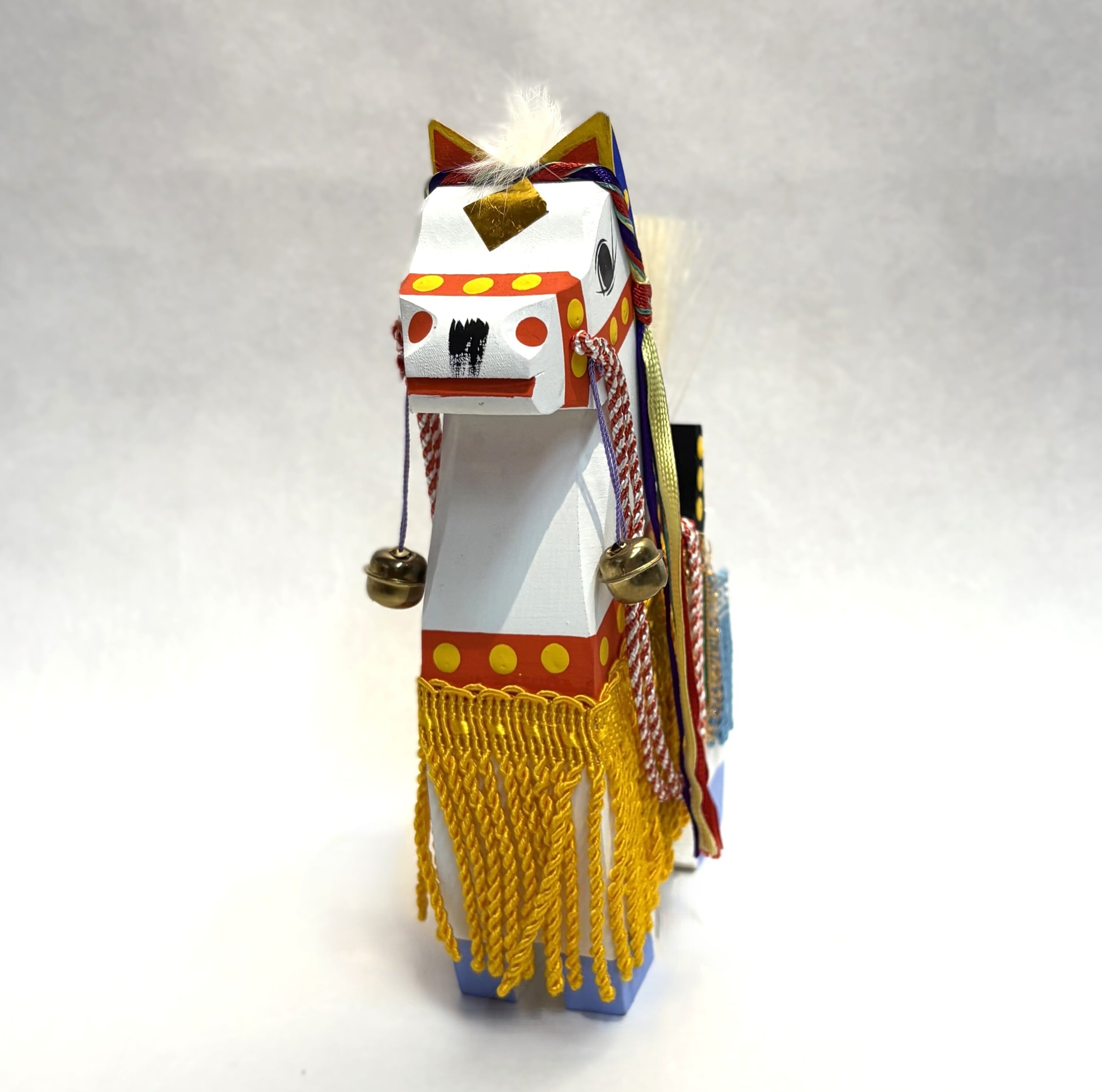 色鮮やかな衣装と鈴をつけた馬の姿が愛らしい、岩手の郷土玩具。