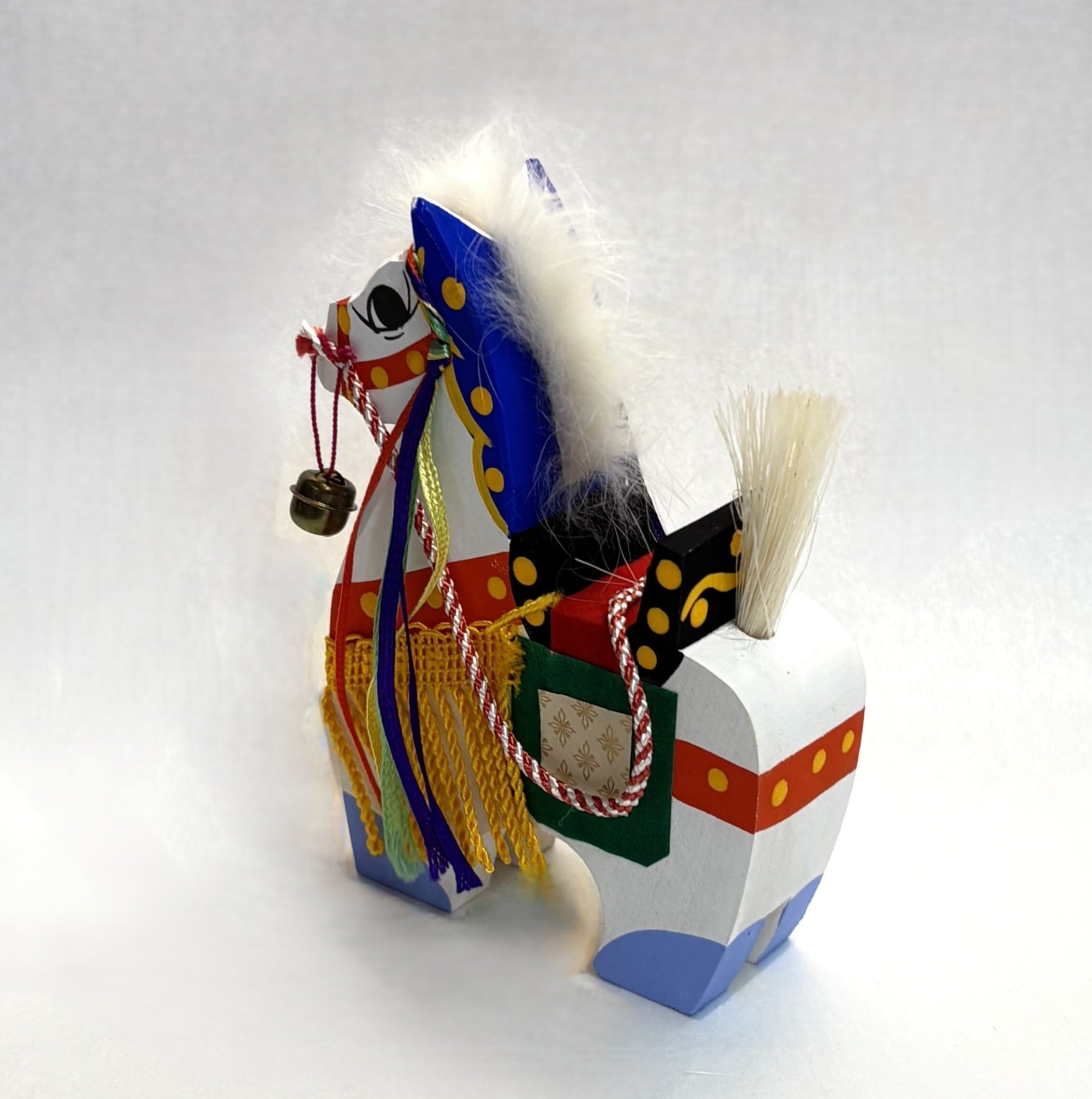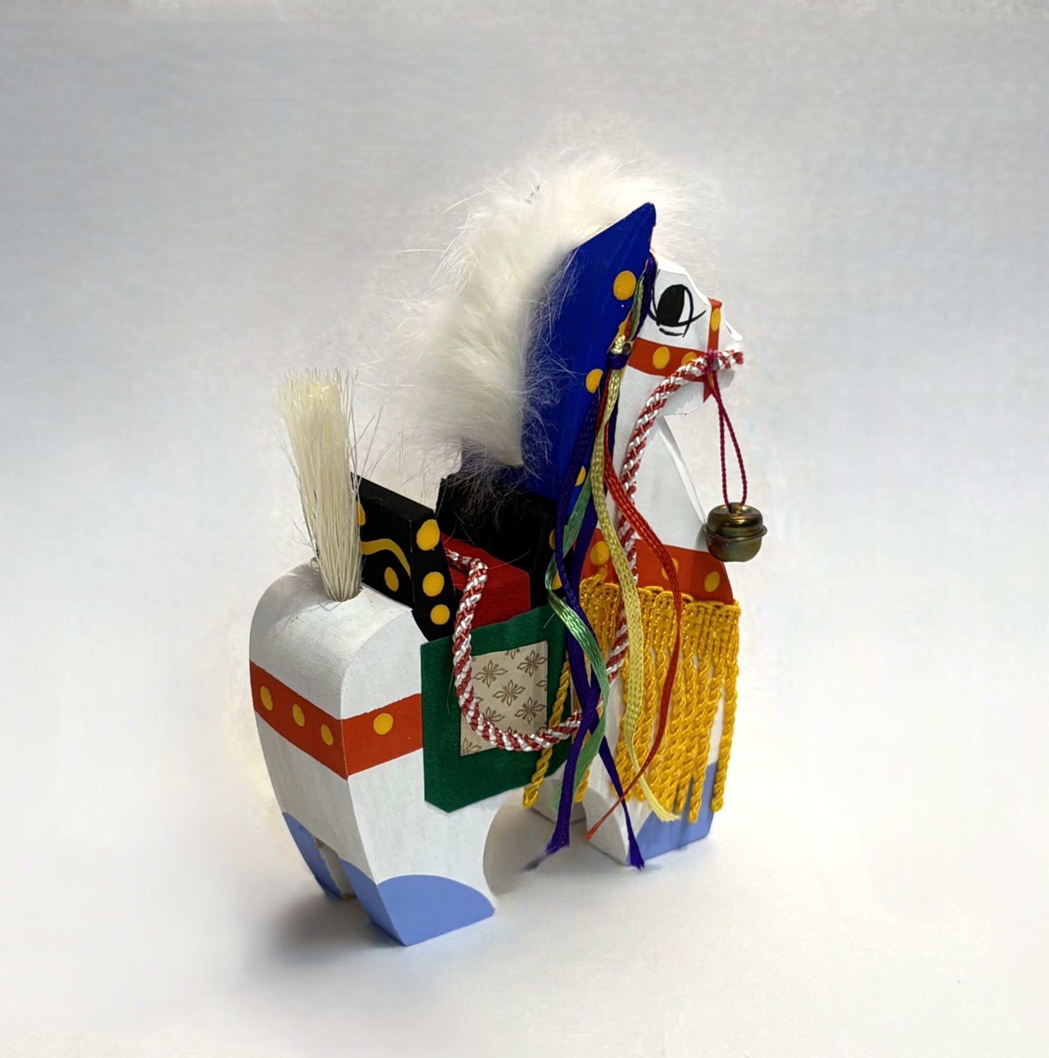 色鮮やかな衣装と鈴をつけた馬の姿が愛らしい、岩手の郷土玩具。