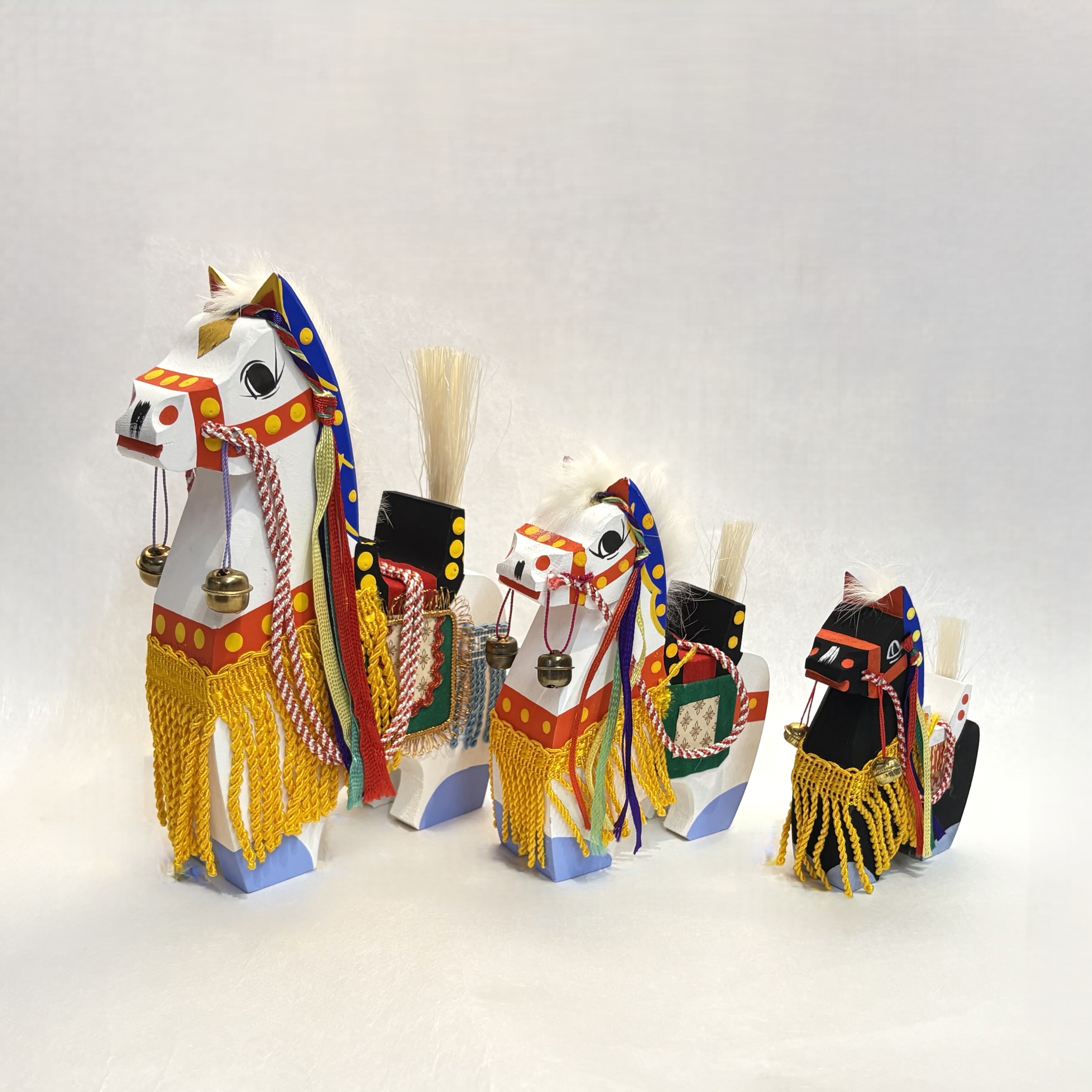 色鮮やかな衣装と鈴をつけた馬の姿が愛らしい、岩手の郷土玩具。