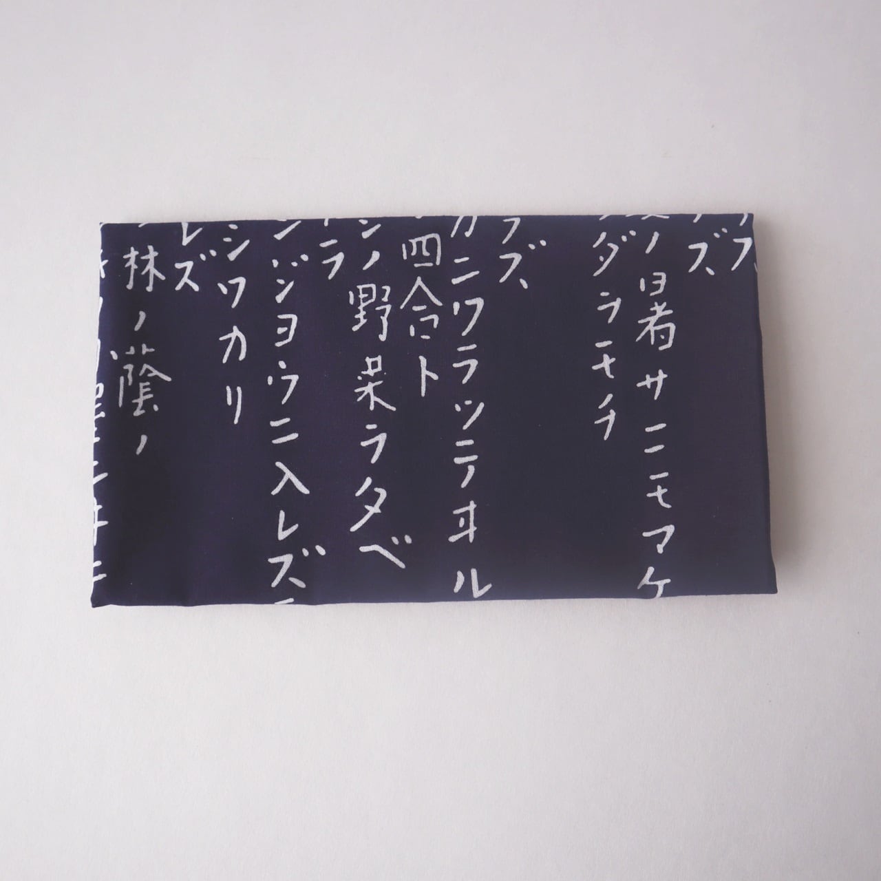 宮沢賢治『雨ニモマケズ』の全文を染めた手拭いです。詩を書いた賢治の気持ちに思いを馳せながらご使用ください。 サイズ:895mm×350mm