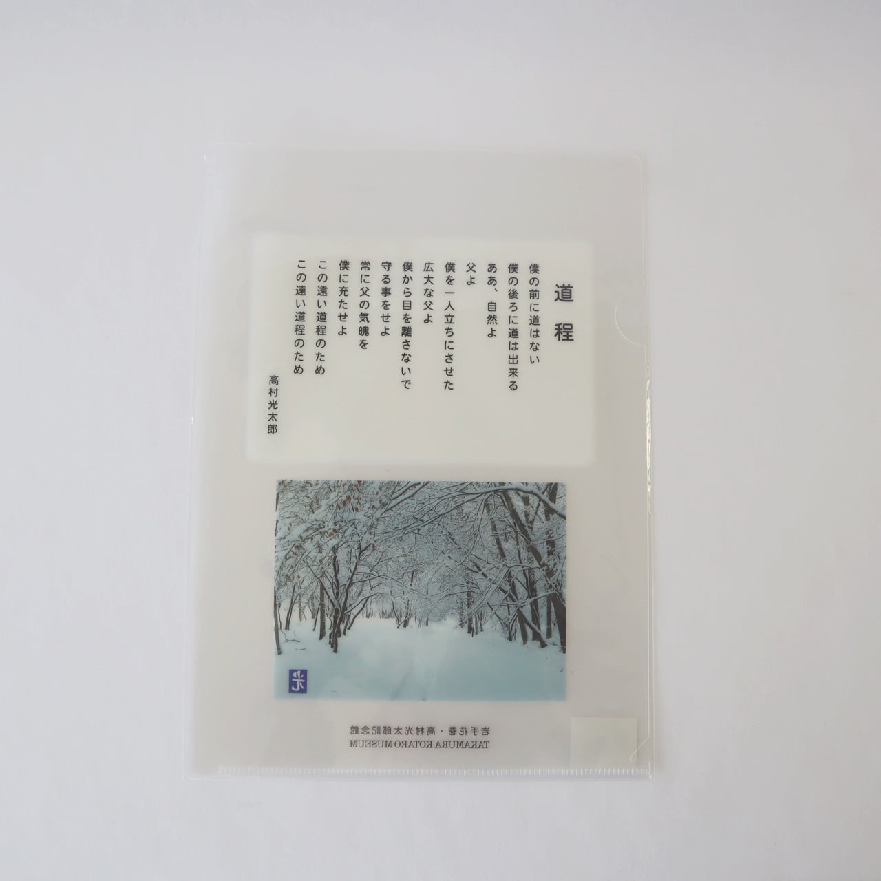 高村光太郎は1945年から約7年を花巻の地で過ごしました。光太郎の代表作「道程」が描かれたA4サイズクリアファイルです。 1枚入り