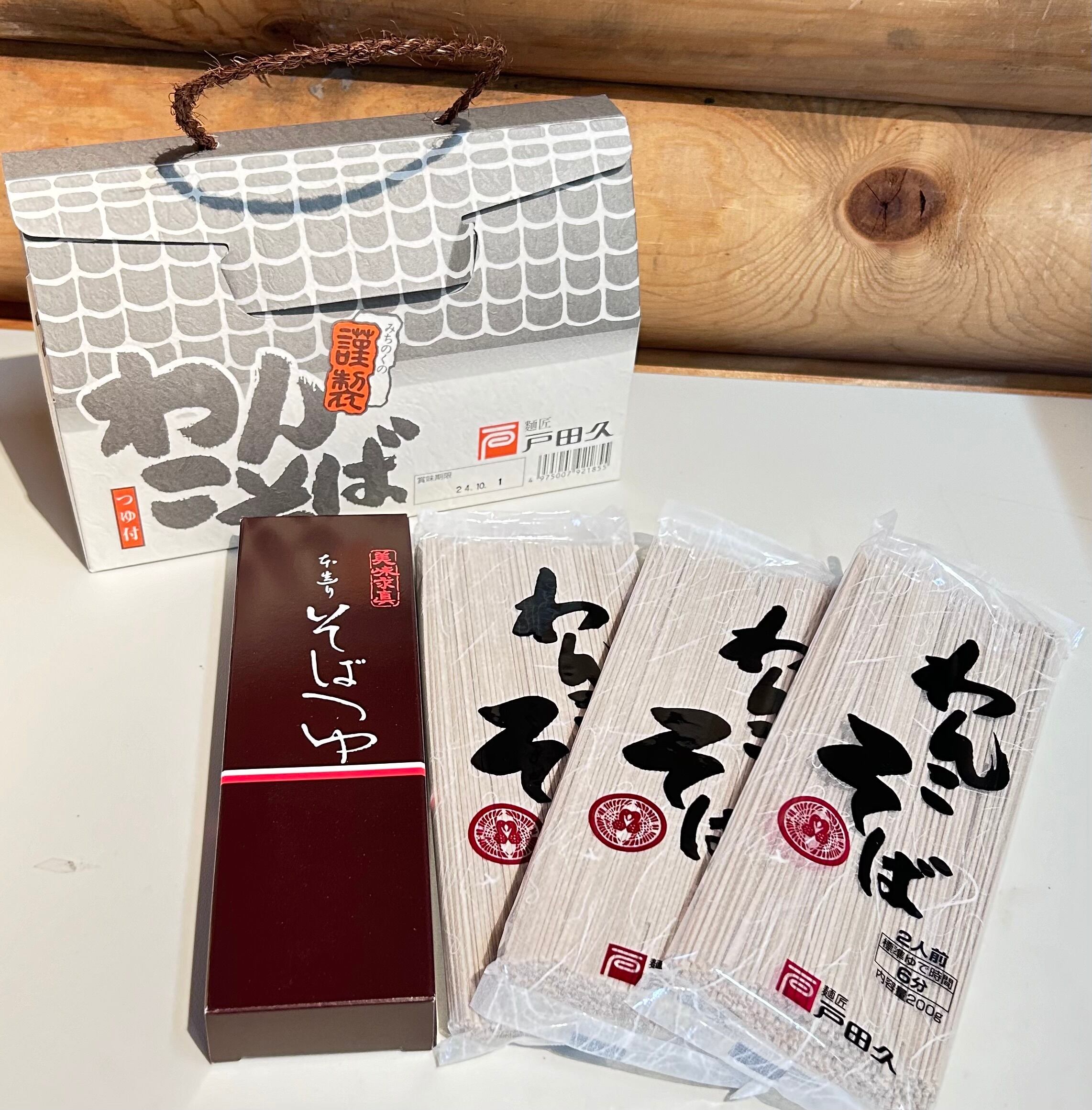 乾麺のそば、200g(2人前)×3 とそばつゆのセットです。少人数からご家族様でお楽しみいただけます。